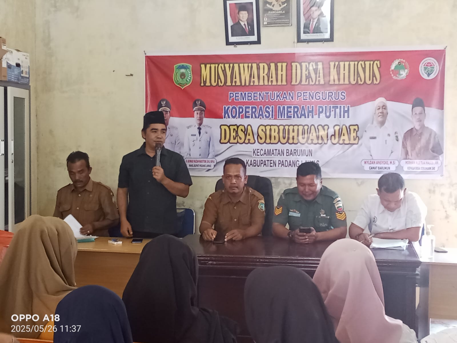 P3kiNews.com - Padang Lawas, Kepala Desa Sibuhuan Jae kecamatan Barumun Gelar Musyawarah pembentukan pengurus koperasi Desa merah Putih, Melalui Voting pertama kali, dilaksanakan Di Kantor Desa, Kamis (26/5/25) Turut hadir, camat,Danramil, Polsek, Tenaga Ahli Kab palas Pendamping Desa, Tokoh Masyarakat, BPD, Tokoh Agama, masyarakat. Pemilihan Ketua Pengurus Koperasi Merah Putih Desa Sibuhuan Jae Kecamatan Barumun, melulai Voting Suara, siapa yang paling banyak maka secara resmi memenangkan sebagai ketua. Dalam pemilihan voting suara ada lima orang yang dicalonkan sebagai ketua kopdes merah putih, Pada voting suara pertama 2 orang jatuh dan 3 orang lagi dengan suara sama, maka terjadi kembali sesuai dengan kesepakatan kembali dibuka voting suara kepada tiga orang, jumlah suara dalam pembentukan voting suara tersebut sebanyak 31 orang, dan pemenang ke 3 delapan orang, ke 2: 11 orang dan pertama : 12 orang maka dalam hal pemilihan secara voting suara ini adalah sesuatu bentuk musyawarah yang secara transparansi.Mirhan Ali Tua Hasibuan Selaku kepala desa Sibuhuan Jae Kecamatan barumun, memberikan bimbingan terhadap peserta Rapat, marilah kita buat rapat pembentukan KOPDES Merah Putih ini dengan kondusif agar tujuan dapat kita capai Koperasi merah putih ini merupakan program Presiden Prabowo di seluruh Indonesia No.Inpres 09 Tahun 2025, tujuan meningkatkan ekonomi dan kesejahteraan rakyat terlebih khususnya kita masyarakat dilingkungan desa sibuhuan jae Harapan kami kepada pihak masyarakat dapat membantu kami dalam menjalankan program Presiden kita untuk mengangkat standarisasi ekonomi kedepannya Dalam rapat pembentukan pengurus kopdes merah putih ini terpilih sebagai Berikut: Ketua :Zul KHairi Hasan Rasoki Hsb Sekretaris :Ardi Azhari Hsb Bendahara :Armlyas Martua Hsb Kepada kepengurusan Koperasi Merah Putih terpilih, berbuatlah semaksimal mungkin atas menjalankan program program pemerintah ini dapat tercapai tujuannya Seluruh lapisan masyarakat jika program ini sudah berjalan harapan kami, mari kita sama hargai bersama karena program ini adalah bukan untuk kami selaku pemerintah desa selain untuk kita semua Adapun Kegiatan program koperasi merah putih, sebagai berikut: 1. Simpan pinjam 2. Penyediakan Pupuk, Alat - Alat Pertanian dll. 3. Penyedian LPG 5. Klinik Desa
