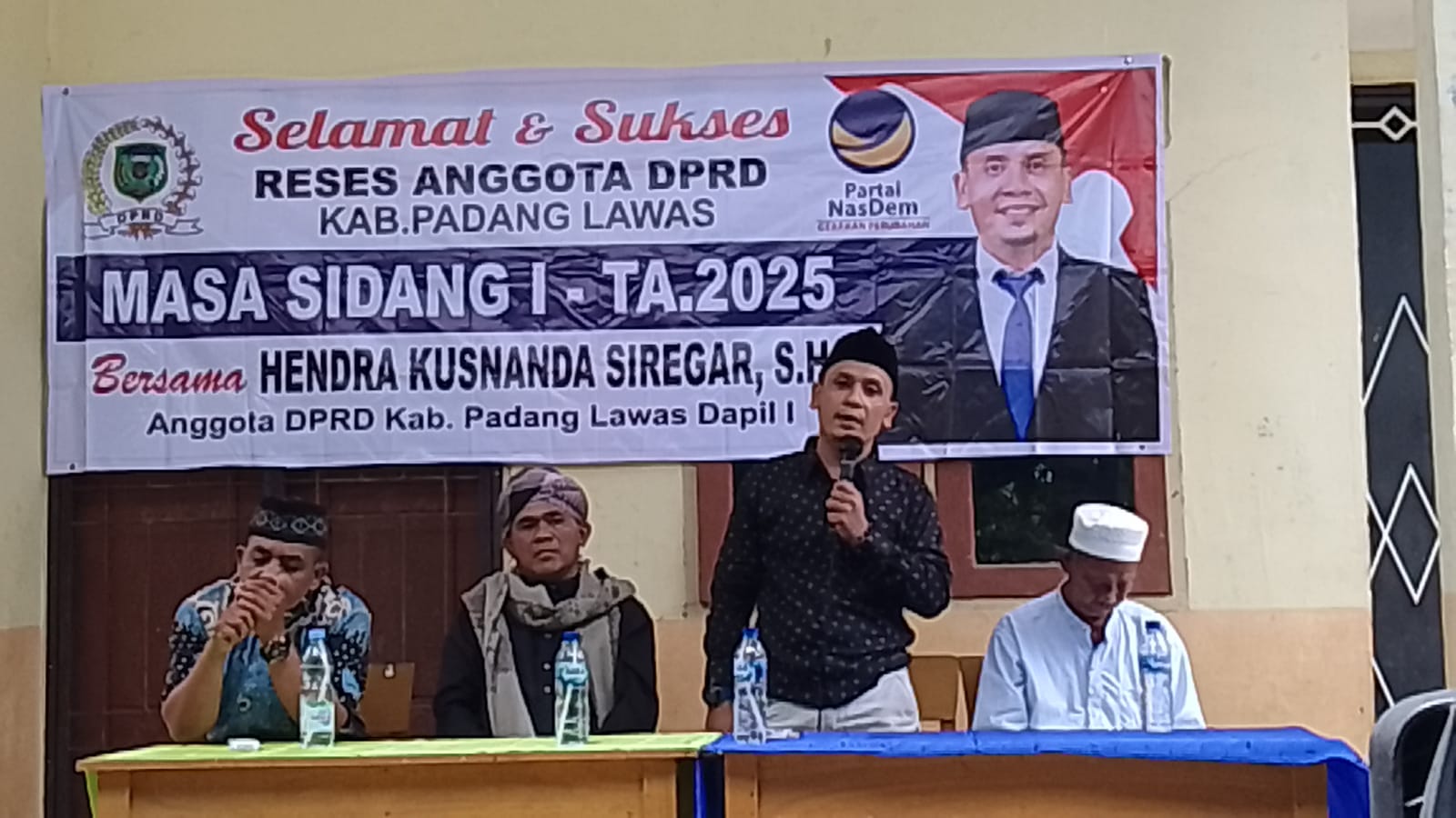 kamis 24/april/2025 anggota DPRD kabupaten Padang lawas Hendra KUSNANDA SIREGAR SH dari praksi Nasdem dapil satu melaksanakan reses, sejak beberapa tahun belakangan ini baru pertama kali ini DPRD yang terpilih untuk dapil satu melaksanakan reses