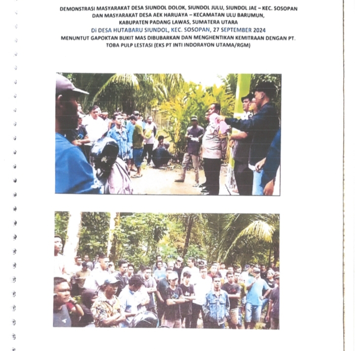 SEBELUM TERJADI KONFLIK ANTAR MASYARAKAT KECAMATAN SOSOPAN BUPATI PADANG LAWAS CEPAT MENGAMBIL TINDAKAN YANG SERIUS TERKAIT GAPOKTAN BUKIT MAS DENGAN PT. TOBA PULP LESTARI