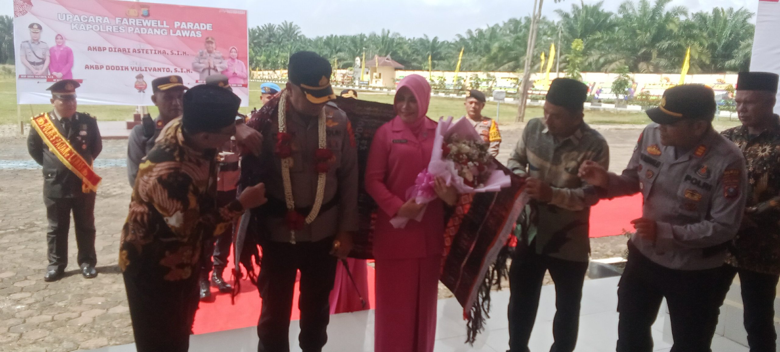 Sabtu 29/03/2025 Kantor Polres Padang Lawas kedatangan Pemimpin baru yaitu AKBP Dodik Yulianto,S.I.K yang selama ini dijabat AKBP Diari Astetika.S.I.K satu hari sebelum menjelang idul Fitri acara Sertijab kapolres padang Lawas berjalan sukses.