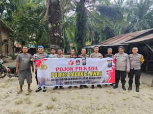 Jelang Pemilihan Umum Kepala Daerah (Pilkada) serentak pada tahun 2024 ini, Kepala Kepolisian Sektor Barumun Tengah jajaran Kepolisian Resor Padang Lawas (Kapolsek Barteng Polres Palas), Iptu Elimawan Sitorus, SH., MH., beserta Personil Polsek Barteng, dan juga masyarakat ikuti kegiatan program Pojok Pilkada yang digelar oleh Polsek Barteng di Desa Bahal Batu, Kecamatan Barteng, Kabupaten Palas, Jum’at, (01/11/2024). Pukul 10.00 wib hingga selesai.