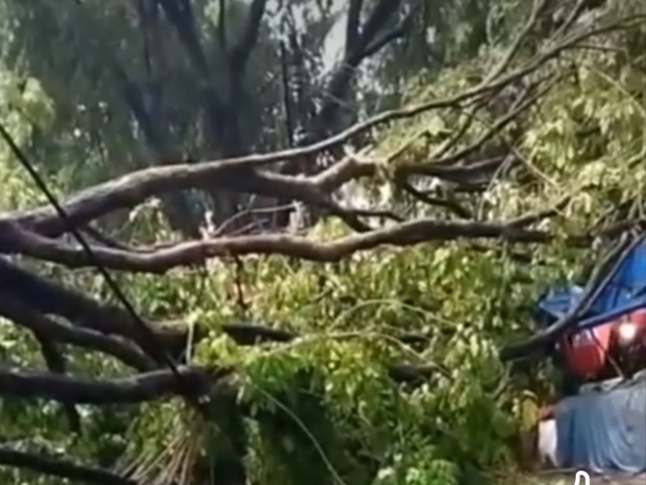 Pohon mangga berukuran besar menimpah sebuah rumah warga di Paluta, kecamatan hulusihapas,desa Simarloting,Senin 14 juli 2025 P3Ki News com.