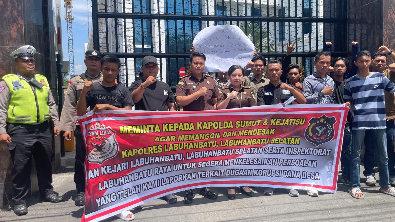 Aksi ini bertujuan mendesak penegak hukum untuk mengusut tuntas dugaan praktik korupsi dana desa yang disinyalir marak terjadi di wilayah Labuhanbatu Raya.