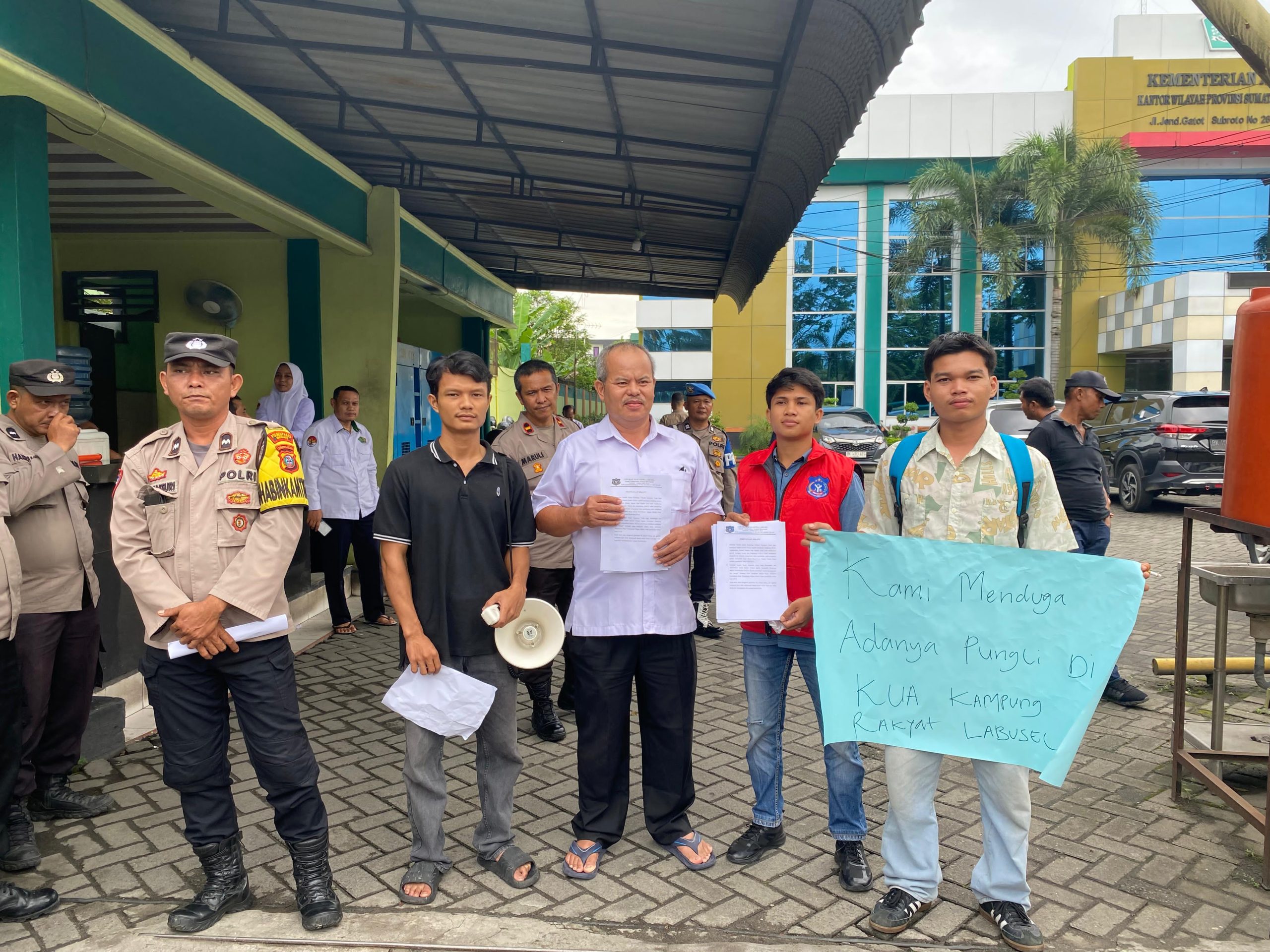Sekumpulan mahasiswa mengatasnamakan Gerakan Mahasiswa Labusel (GEMALAB) mendatangi Kantor Wilayah Kementrian Agama Sumatera Utara (Kanwil Kemenag Sumut) dalam hal unjuk rasa terkait adanya dugaan tindak pidana pungutan liar di Kantor Urusan Agama (KUA) Kampung Rakyat Kabupaten Labuhanbatu Selatan Senin (16/6/2025).